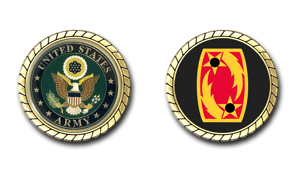 Please enjoy this U.S. Army Officially Licensed Challenge Coin. This coin is approximately 1.75 inches in size, is a 2 sided coin and is of the highest quality.
