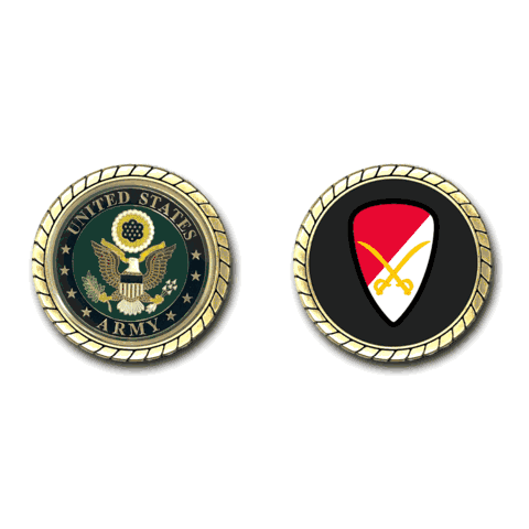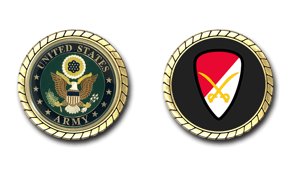 Please enjoy this U.S. Army Officially Licensed Challenge Coin. This coin is approximately 1.75 inches in size, is a 2 sided coin and is of the highest quality.