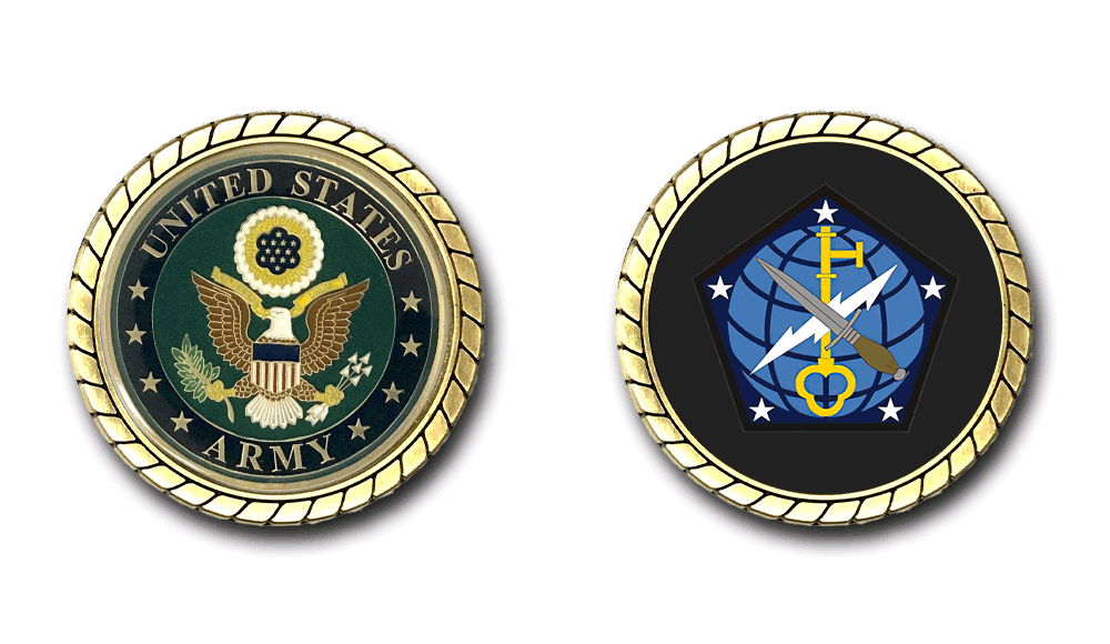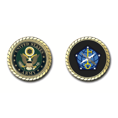 Please enjoy this U.S. Army Officially Licensed Challenge Coin. This coin is approximately 1.75 inches in size, is a 2 sided coin and is of the highest quality.