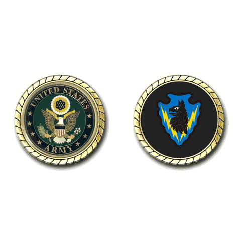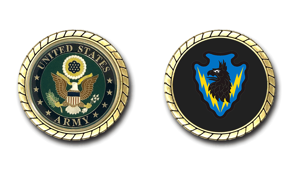 Please enjoy this U.S. Army Officially Licensed Challenge Coin. This coin is approximately 1.75 inches in size, is a 2 sided coin and is of the highest quality.
