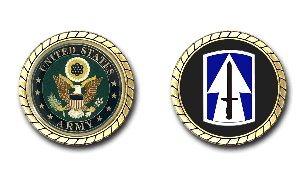 Please enjoy this U.S. Army Officially Licensed Challenge Coin. This coin is approximately 1.75 inches in size, is a 2 sided coin and is of the highest quality.