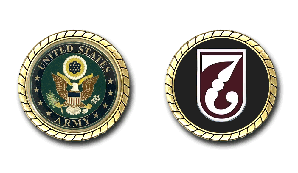 Please enjoy this U.S. Army Officially Licensed Challenge Coin. This coin is approximately 1.75 inches in size, is a 2 sided coin and is of the highest quality.