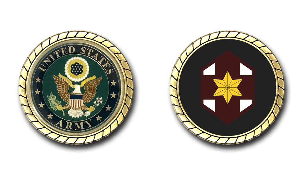 Please enjoy this U.S. Army Officially Licensed Challenge Coin. This coin is approximately 1.75 inches in size, is a 2 sided coin and is of the highest quality.