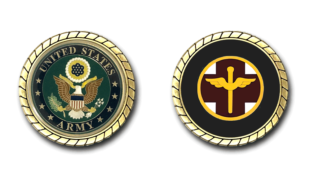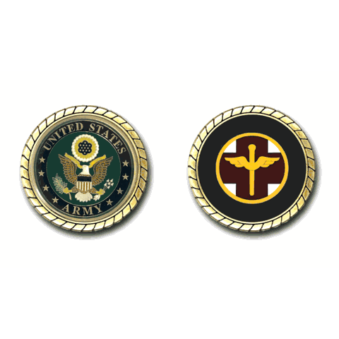Please enjoy this U.S. Army Officially Licensed Challenge Coin. This coin is approximately 1.75 inches in size, is a 2 sided coin and is of the highest quality.