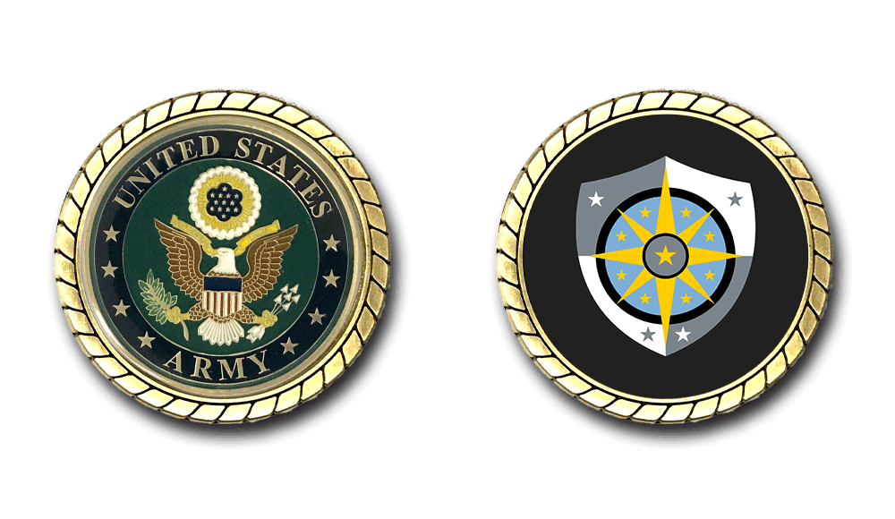 Please enjoy this U.S. Army Officially Licensed Challenge Coin. This coin is approximately 1.75 inches in size, is a 2 sided coin and is of the highest quality.