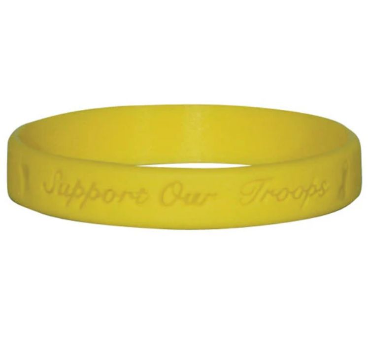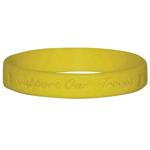 Please show your support by wearing the latest - Support Our Troops yellow rubber Bracelet.