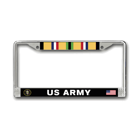 This Officially Licensed U.S. Army License Plate Frame is Proudly Sublimated and Assembed by us in Cockeysville, MD and fits all standard US cars and trucks. Made from the quality finished metal alloy with UV resistant graphics