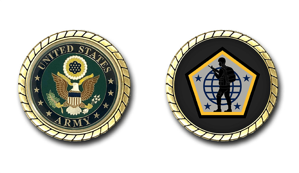 Please enjoy this U.S. Army Officially Licensed Challenge Coin. This coin is approximately 1.75 inches in size, is a 2 sided coin and is of the highest quality.