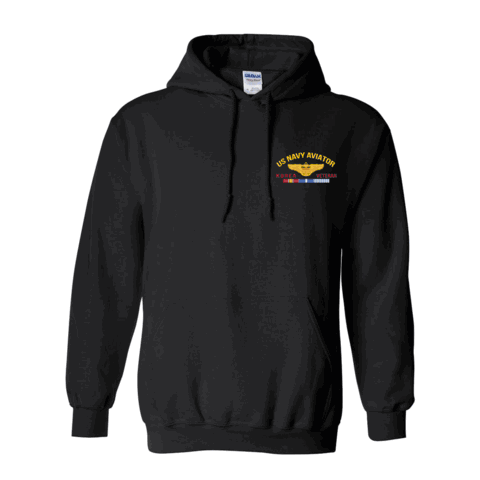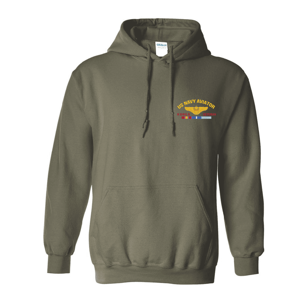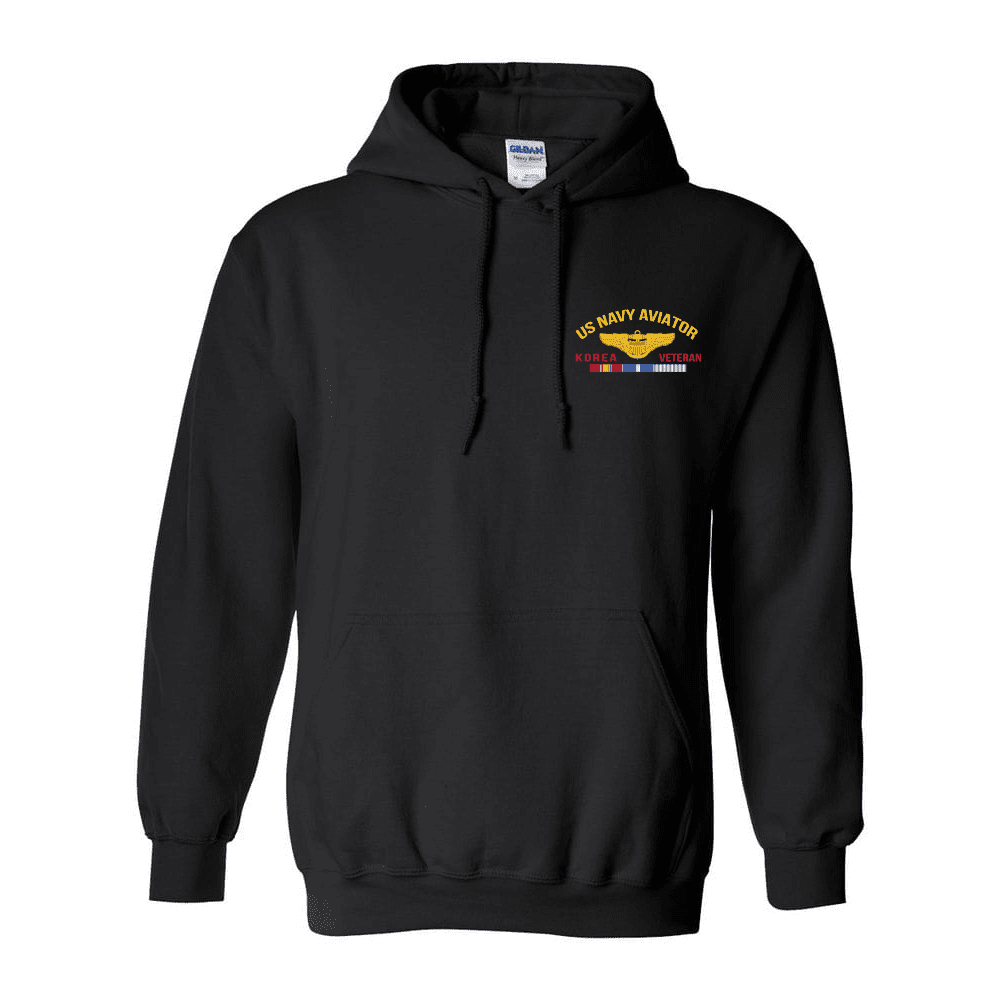 US Navy Aviator Wings Korea Veteran Left Chest Hooded Sweatshirt