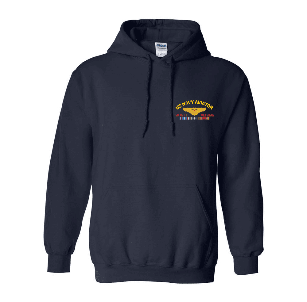 US Navy Aviator Wings WWII Europe Veteran Left Chest Hooded Sweatshirt