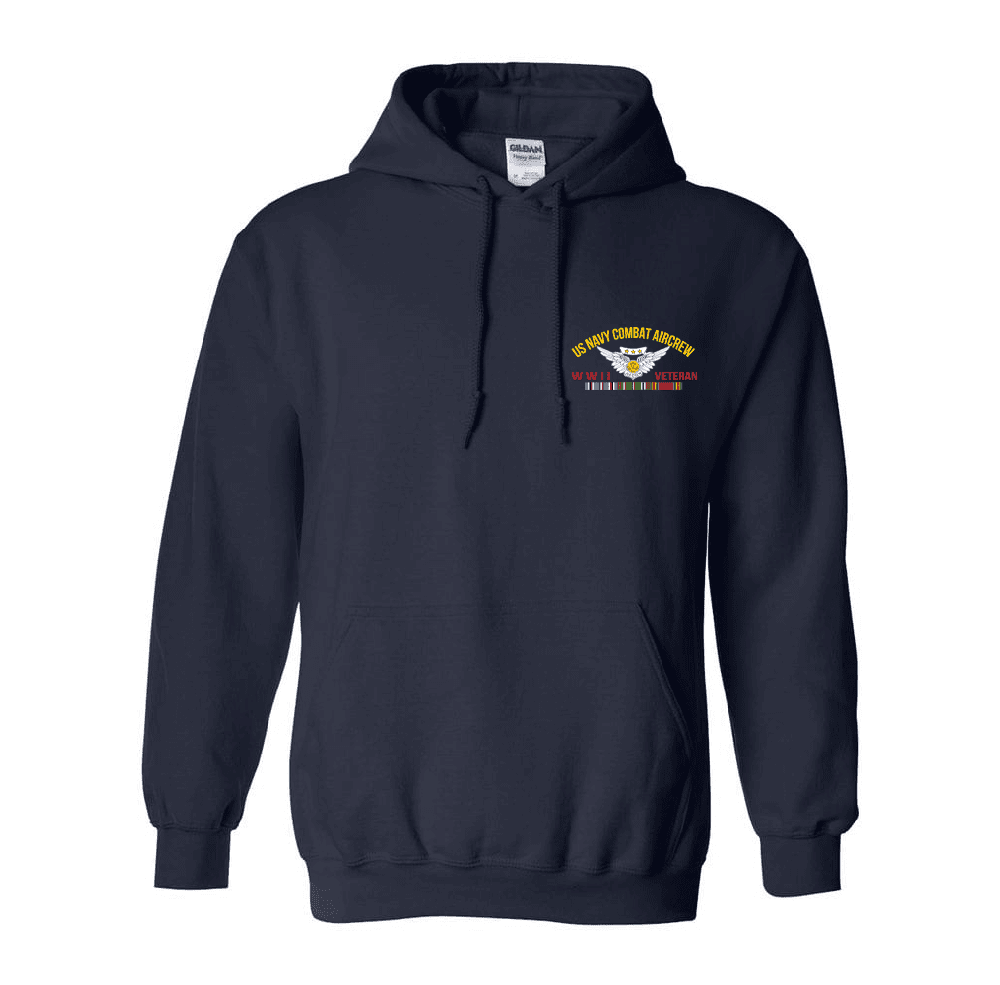 US Navy Combat Aircrew Wings WWII Europe Veteran Left Chest Hooded Sweatshirt