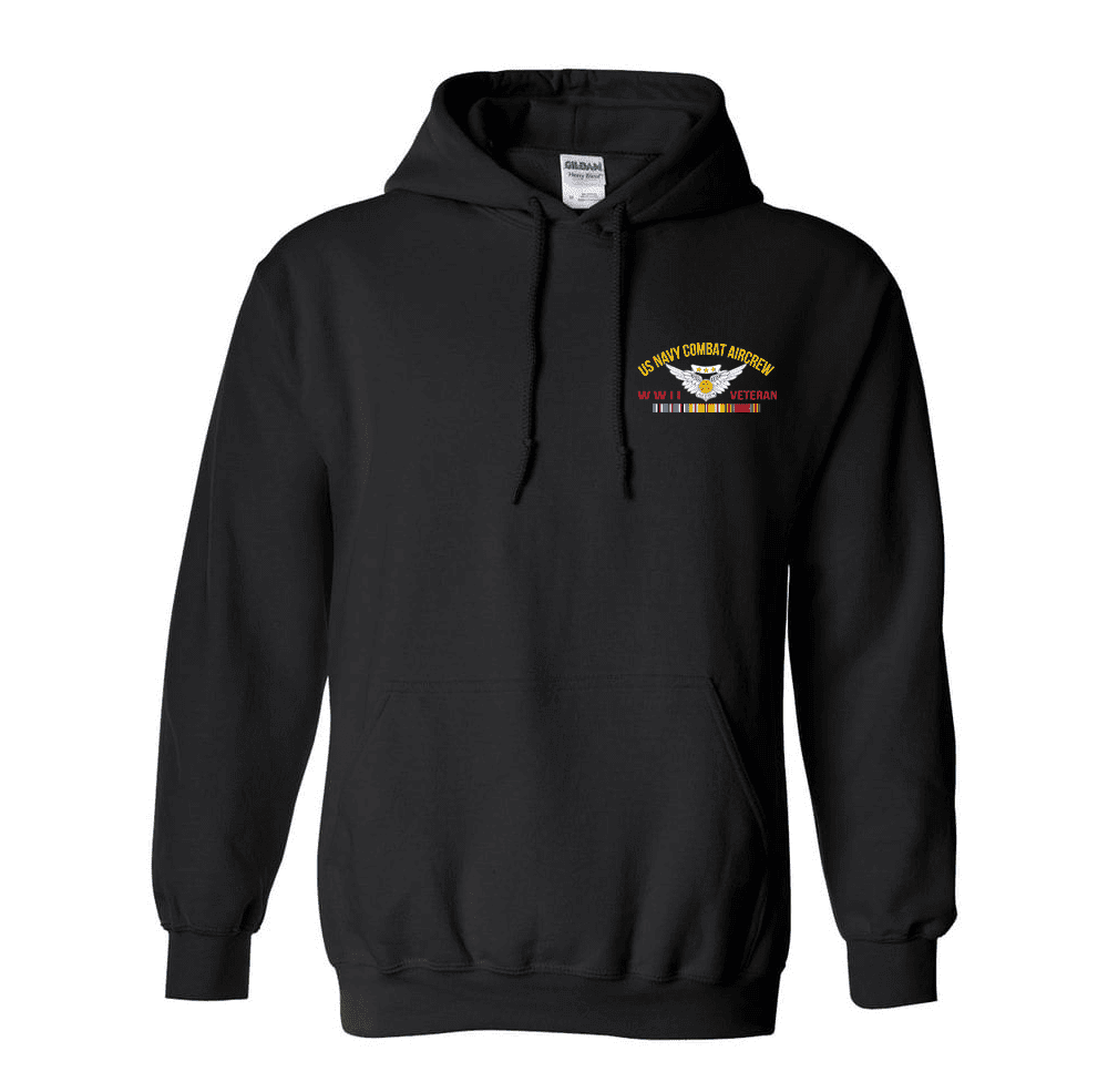 US Navy Combat Aircrew Wings WWII Pacific Veteran Left Chest Hooded Sweatshirt
