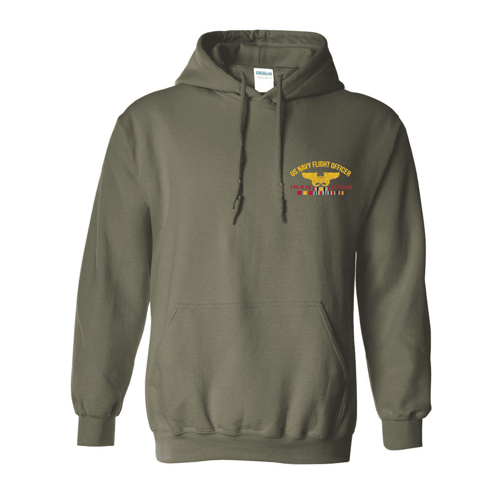 US Navy Flight Officer Wings Iraq Veteran Left Chest Hooded Sweatshirt