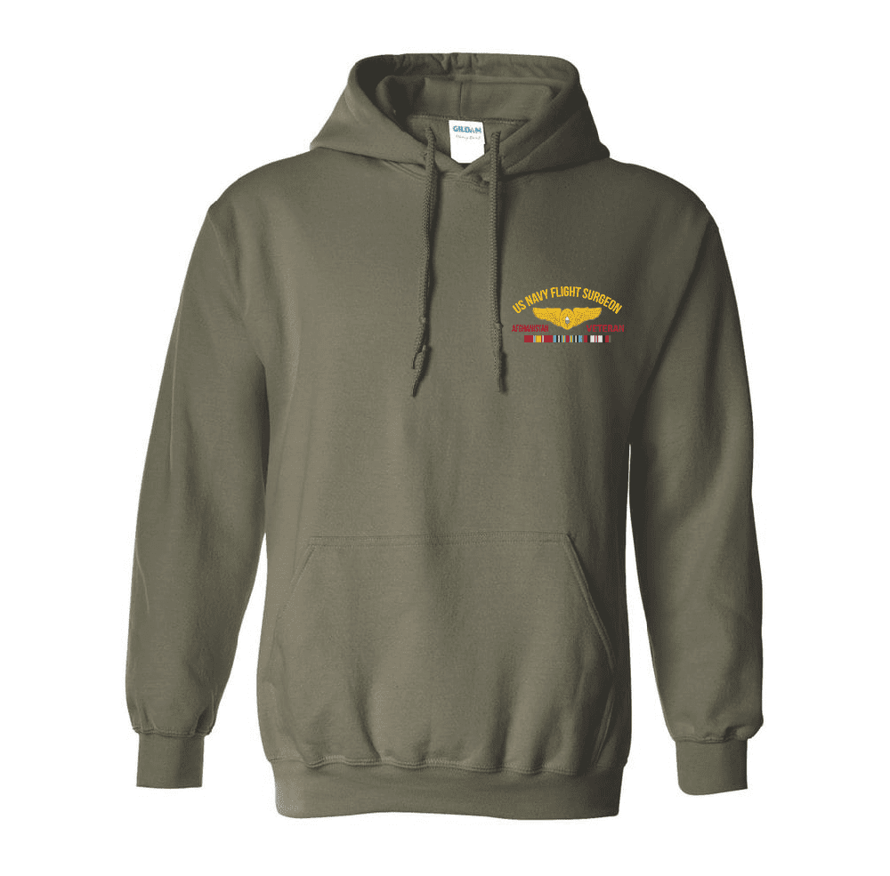 US Navy Flight Surgeon Wings Afghanistan Veteran Left Chest Hooded Sweatshirt
