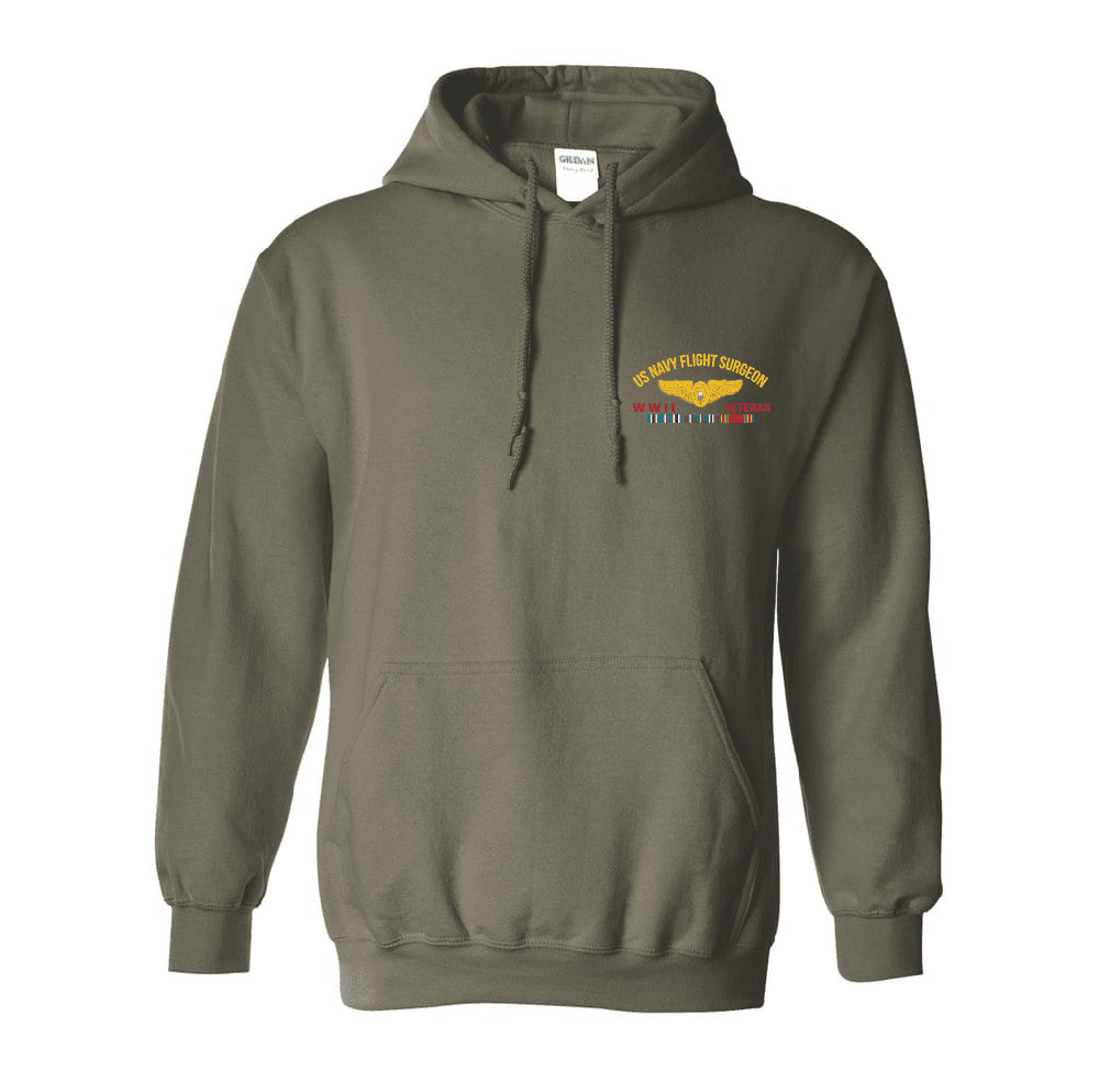 US Navy Flight Surgeon Wings WWII Europe Veteran Left Chest Hooded Sweatshirt