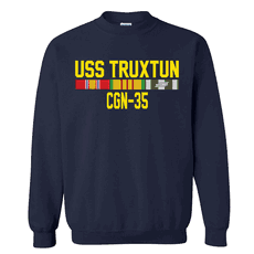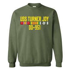 Please enjoy this US Navy officially licensed USS Coral Sea CVA-43 With Vietnam Service Ribbons OD Green Center Chest Sweatshirt. It is 70-30% Cotton/Poly pre-shrunk Premium Cotton Adult Sweatshirt and is available in S, M, L, XL, 2X and 3X sizes.