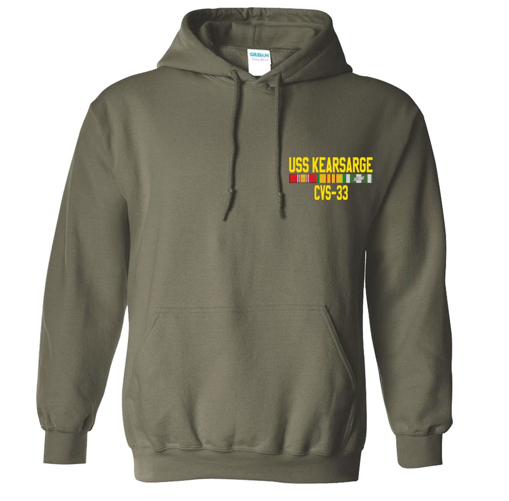 USS Kearsarge CVS-33 With Vietnam Service Ribbons OD Green Left Chest Hooded Sweatshirt