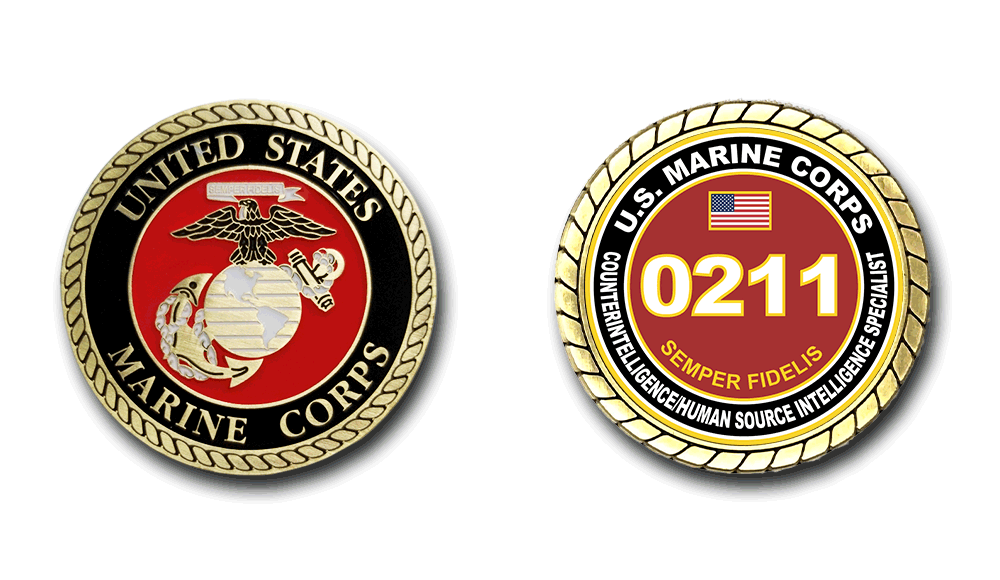 0211 Counterintelligence/Human Source Intelligence Specialist US Marine Corps MOS Challenge Coin