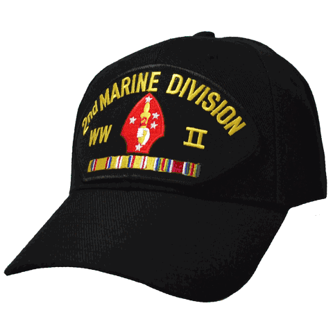 Enjoy a Military cap that is Black, five panel, full back (not mesh) and fully adjustable embroidered with 2nd Marine Division WWII.