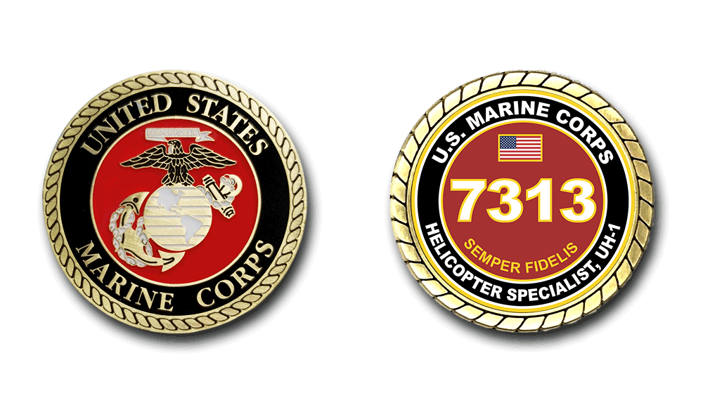 7313 Helicopter Specialist, UH-1 US Marine Corps MOS Challenge Coin