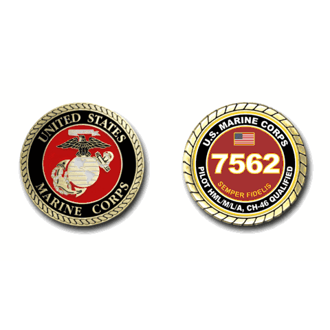 7562 Pilot HML/M/L/A, CH-46 Qualified US Marine Corps MOS Challenge Coin