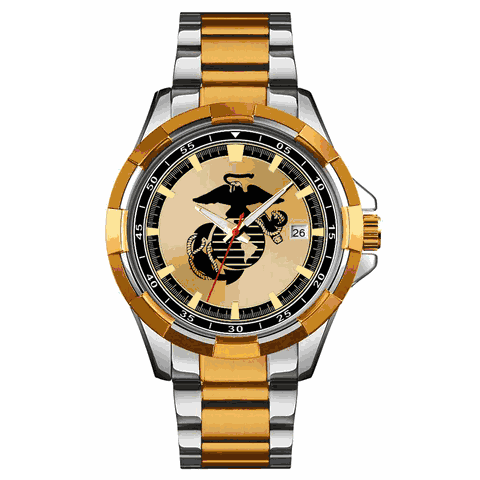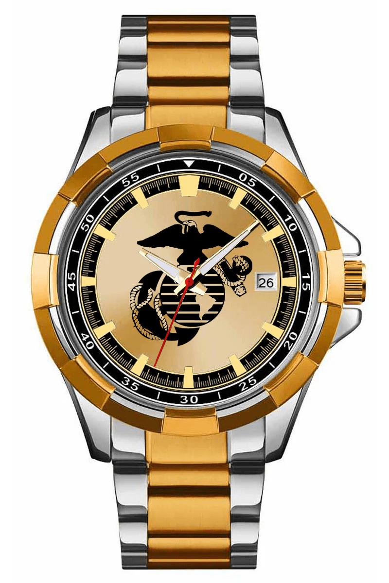 Aquaforce US Marine Corps EGA Gold-Black Analog Quartz Dress Watch