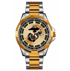 Aquaforce Watches / Aquaforce US Marine Corps EGA Gold-Black Leather Strap Analog Quartz Dress Watch