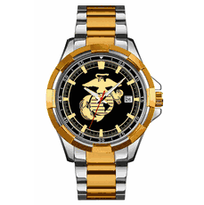 Aquaforce US Marine Corps EGA Gold-Black Leather Strap Analog Quartz Dress Watch
