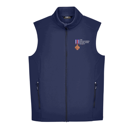 The Distinguished Flying Cross Society Fleece Vest is blue and 96% polyester, 4% spandex bonded with 100% polyester anti-pill fleece with water-repellent finish and is available in S thru $X sizes.