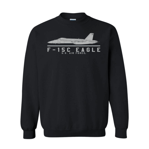 Please enjoy this Officially Licensed F-15C Eagle Sweatshirt. It is 70-30% Cotton/Poly pre-shrunk Premium Cotton Adult Sweatshirt and is available in S, M, L, XL, 2X and 3X sizes.