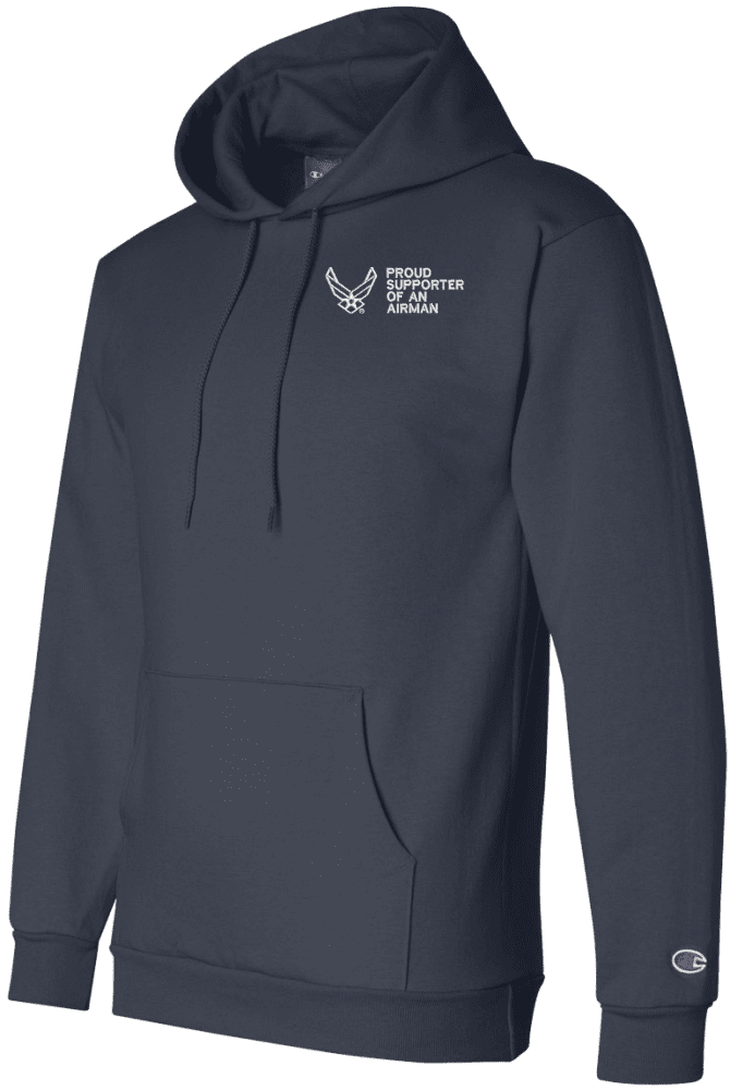 Please enjoy this US Air Force officially licensed Hooded Sweatshirt. Each U.S. Air Force Hoodie is direct embroidered onto either a Champion or Jerzees brand sweatshirt using a 9.5 oz 50/50 Cotton Poly blend material. These Military Sweatshirts are proudly embroidered in the USA.