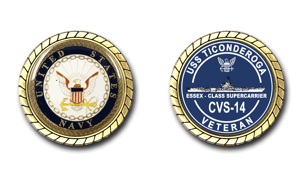 USS Ticonderoga CVS-14 Silhouette Veteran Challenge Coin