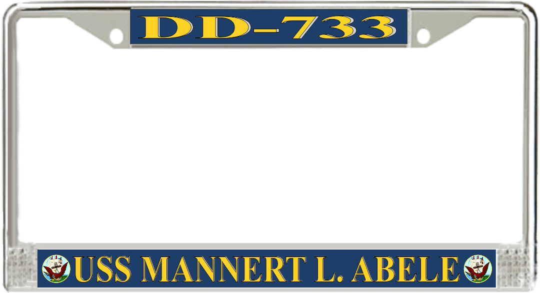 This Officially Licensed USS Mannert K. Abeke DD-733 License Plate Frame is Sublimated and Assembed from the quality finished metal alloy with UV resistant graphics. This Frame, a custom, personalized, bracket serves as a great looking holder, displaying your License Plate. Fits all standard US cars and trucks and shows your pride and service of the USS Mannert K. Abeke DD-733.