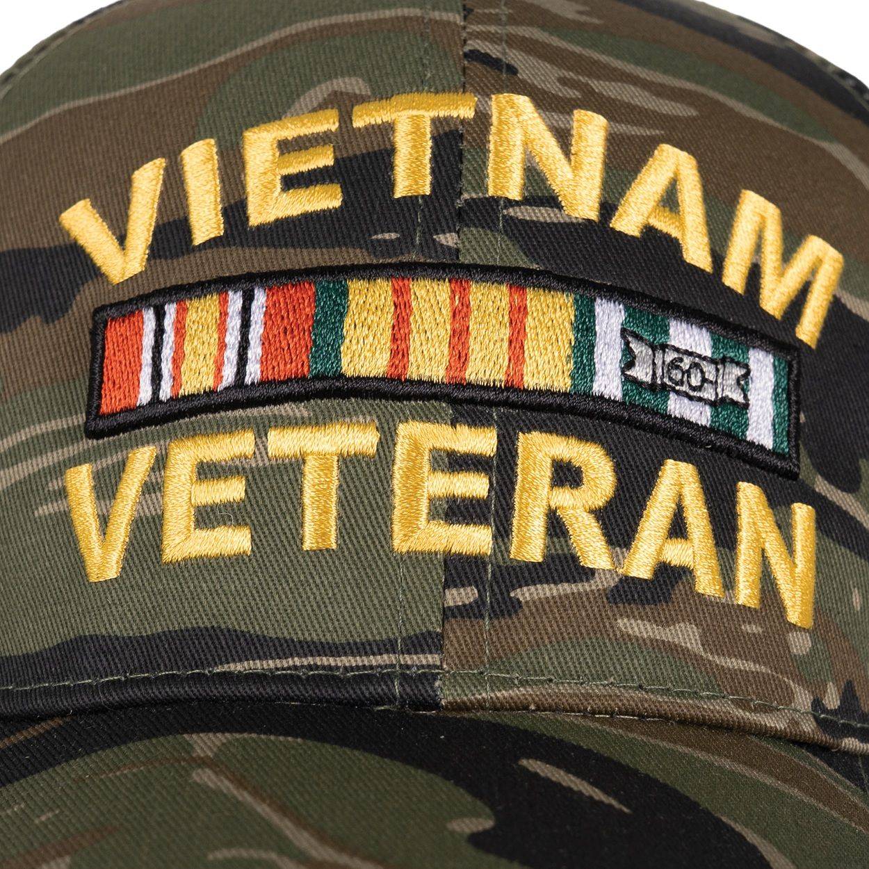 This cap includes “Vietnam Vet” text on the sandwich brim, hook and Loop adjustable strap for a customizable fit for 1 size fits mos and a non-woven brushed cotton twill sweatband effectively wicks away moisture.